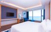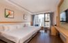Phòng được bố trí khu vực ban công (có ghế ngồi) hướng ra bao quát cảnh biển và phố, phòng tắm có bồn tắm nằm.