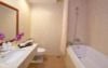 Căn biệt thự ở tối đa 3 người lớn (phòng 1 giường đôi + 1 giường phụ) và 1 bé dưới 11 tuổi hoặc 2 người lớn và 2 bé dưới 11 tuổi, được bố trí thêm ban công hướng ra biển, phòng tắm thiết buồng tắm đứng, vòi sen và bồn tắm nằm.