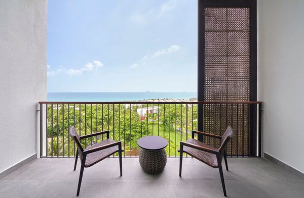Phòng có tầm nhìn hướng ra biển, ban công riêng rộng rãi, có ghế ngồi thư giãn để tận hưởng làn gió biển, lắng nghe tiếng sóng và đón ánh bình minh.