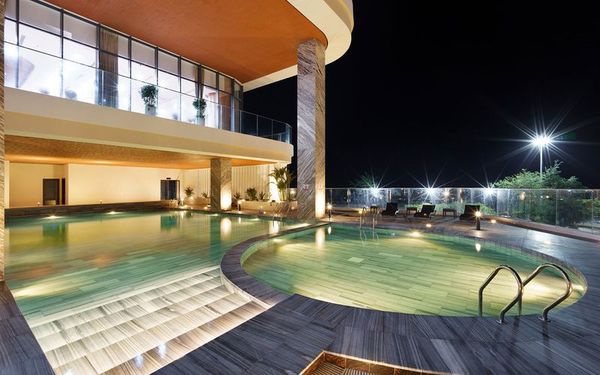 Hồ bơi ngoài trời nằm tại tầng 2, thiết kế theo không gian mở với tầm nhìn ra Bãi Sau. Hồ bơi được chia thành khu vực người lớn (sâu 1.2-1.8m) và khu vực trẻ em (sâu khoảng 0.9m).