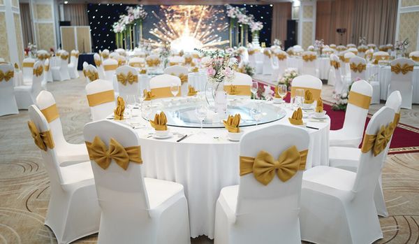 Không gian sảnh cưới rộng rãi với cách sắp xếp hơn 30 bàn